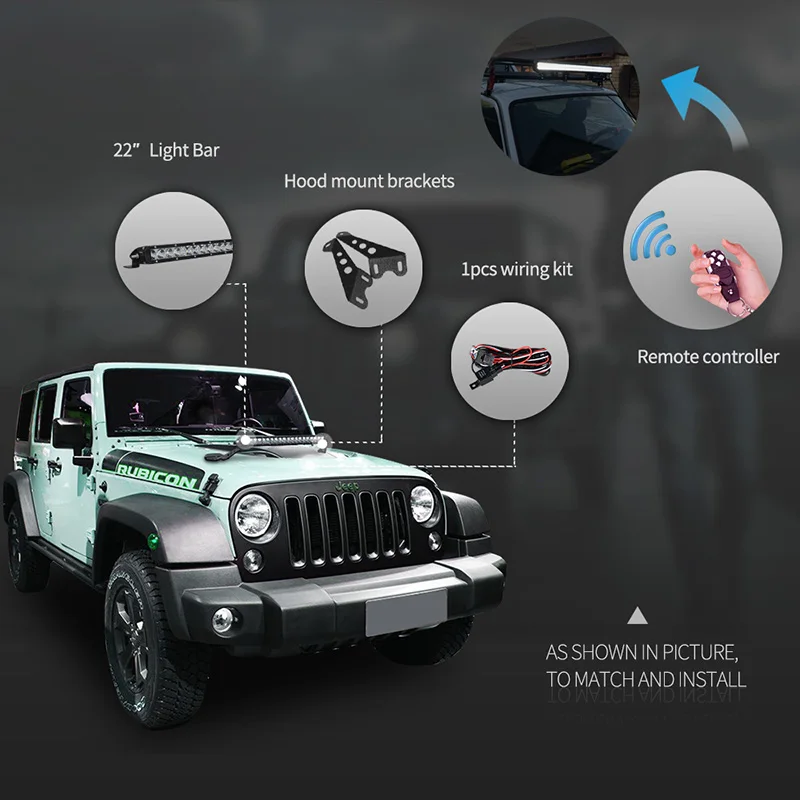 HOT Sale Led work light Offroad Single Row LED DERI Light Bar with Wireless Remote Controller for Jeep Wrang