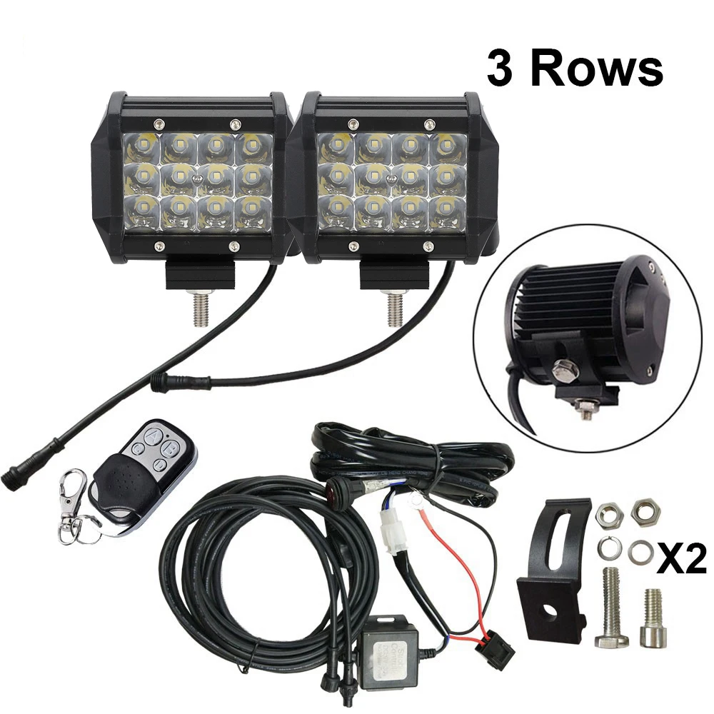 HOT Sale Remote Control 4 Inch 3 Rows 24 Flash Modes Amber White 36w Strobe LED Work Light free Wire Harness