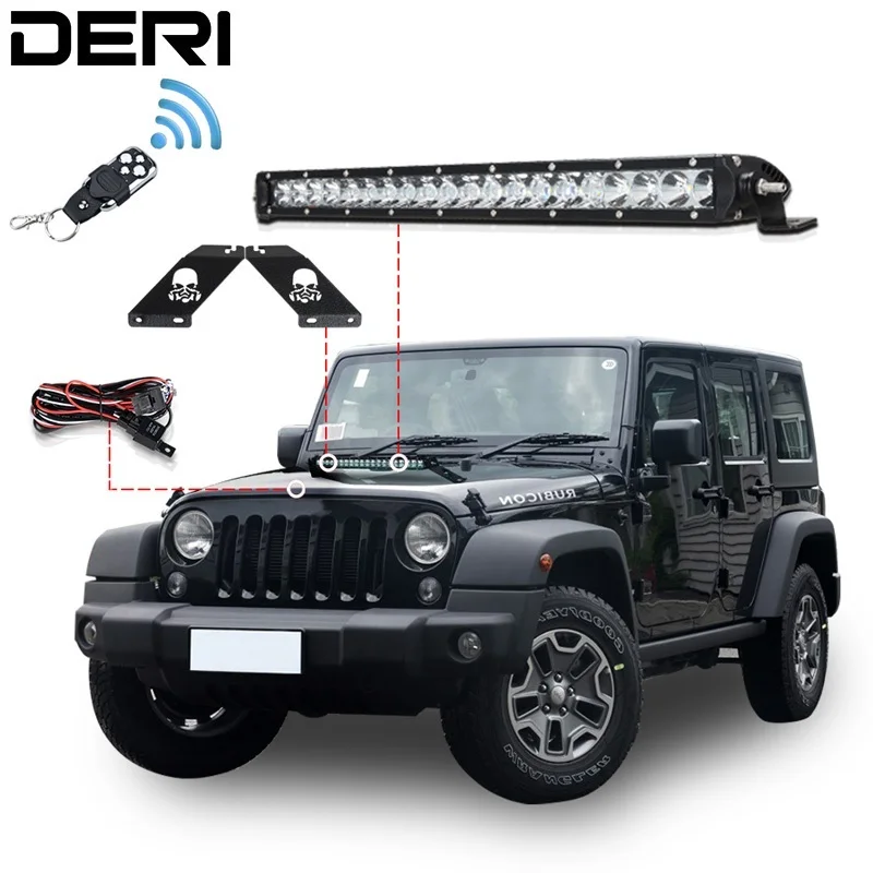 20 inch 100W Combo Offroad LED Light Bar + Wireless Remote Controller Hood Mount Bracket Wire For J